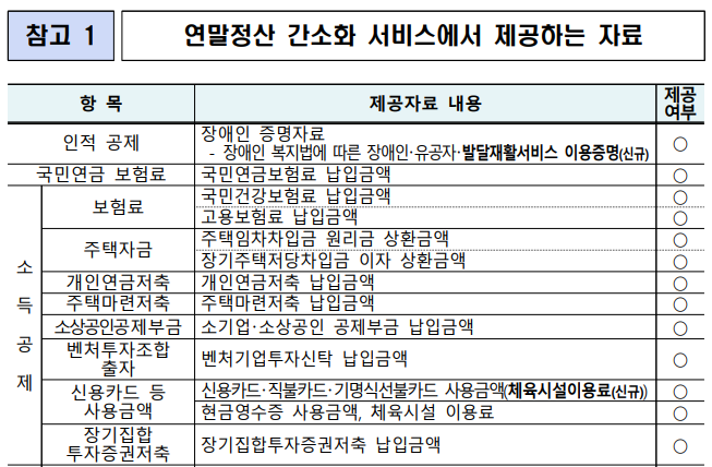 [참고1] 연말정산 간소화 서비스에서 제공하는 자료