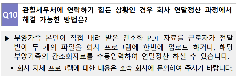 10. 관할세무서에 연락하기 힘든 상황인 경우 회사 연말정산 과정에서 해결 가능한 방법은?