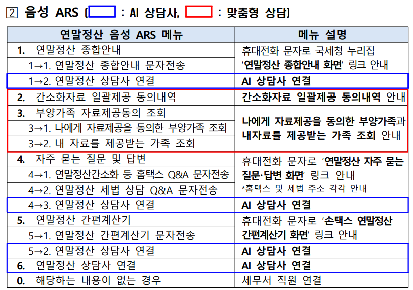 국세상담센터(126) 연말정산 ARS 및 AI 상담사 연결 구성