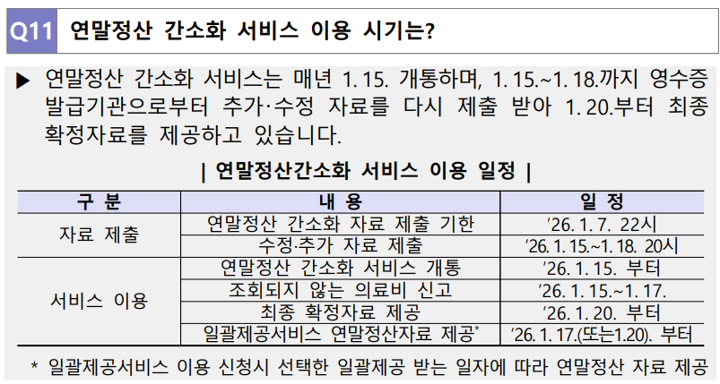 11. 연말정산 간소화 서비스 이용 시기는?
