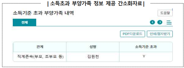 더욱 정교해진 소득기준 초과 부양가족 명단 제공