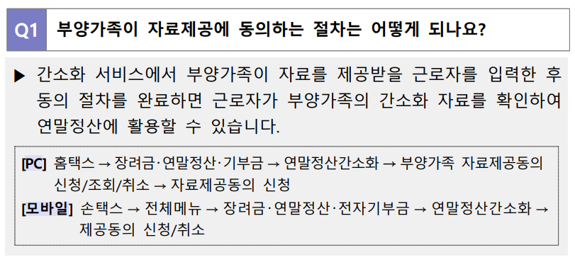 1. 부양가족이 자료제공에 동의하는 절차는 어떻게 되나요?