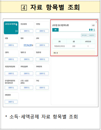 소득, 세액공제 자료 조회